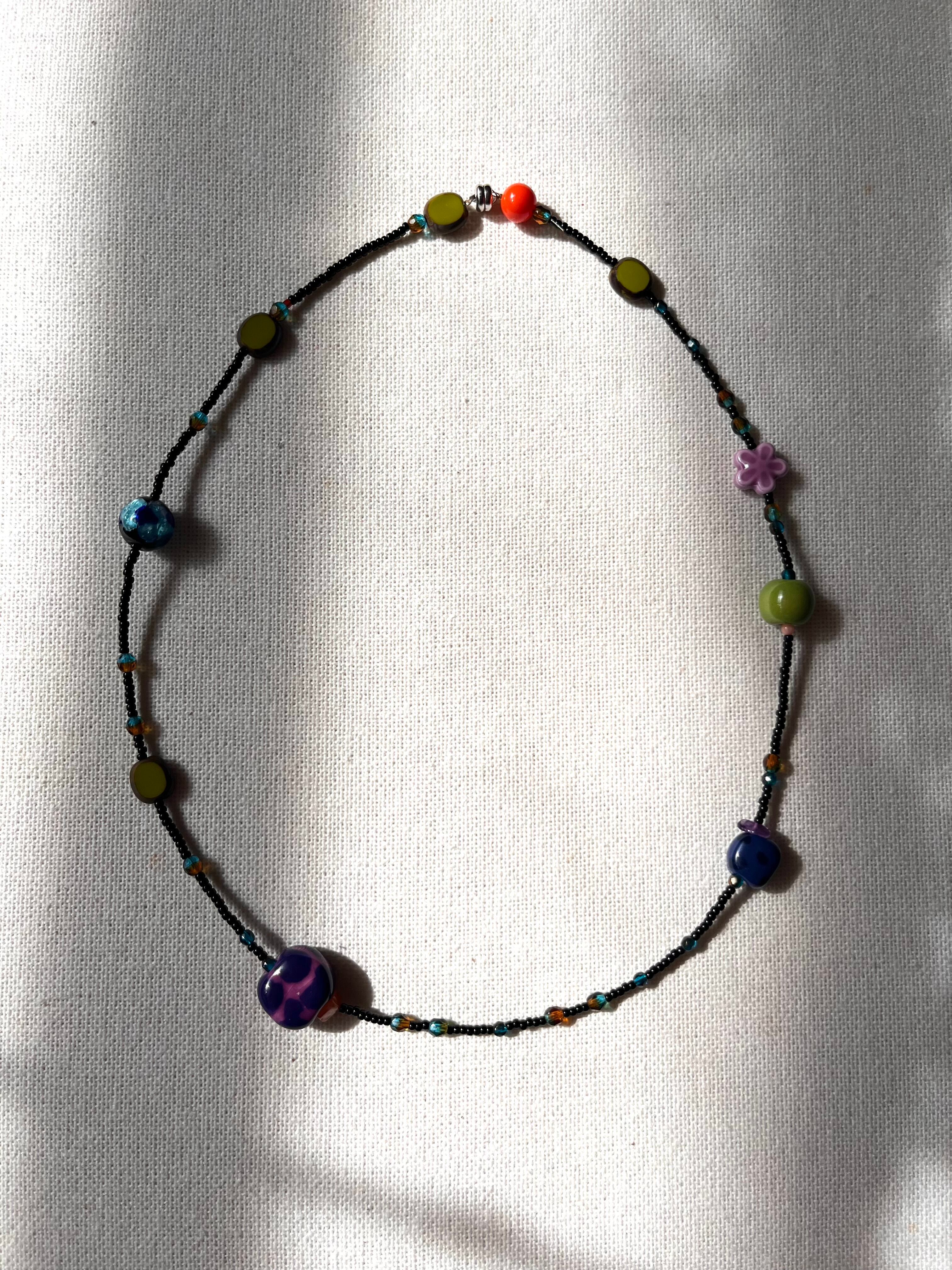ハンドメイドのケニアのセラミックビーズと蜻蛉玉を組み合わせた一点もの。