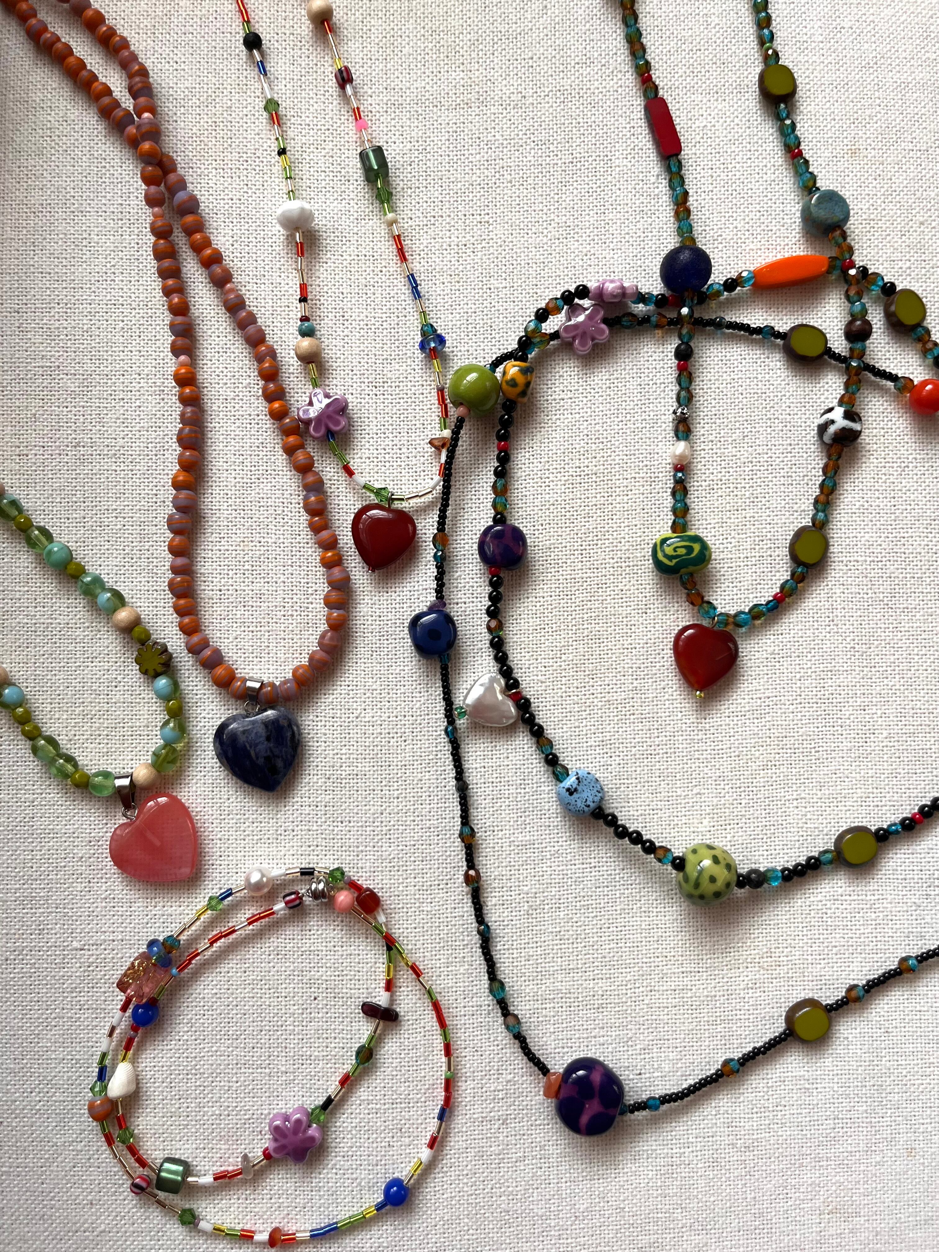 ✔︎ 素材:ハート型淡水パール、ケニアセラミックビーズ、ガラスビーズ ほか